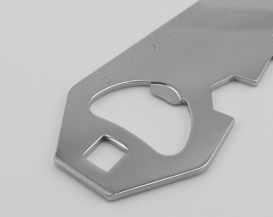 LACKDOSENÖFFNER NR. 7299-E zurück zurück vor vor Maße / Material:		ca. 11,7 cm, Stahl vernickelt Funktionen:			Farbdosenöffner / Lackdosenöffner, 3 verschiedene Öffner für Farbdosen, Vierkant,  10-er und 13-er Schlüssel, Lineal mit cm oder inch, Laschenöffner, Flaschenöffner  MADE IN SOLINGEN/GERMANY
